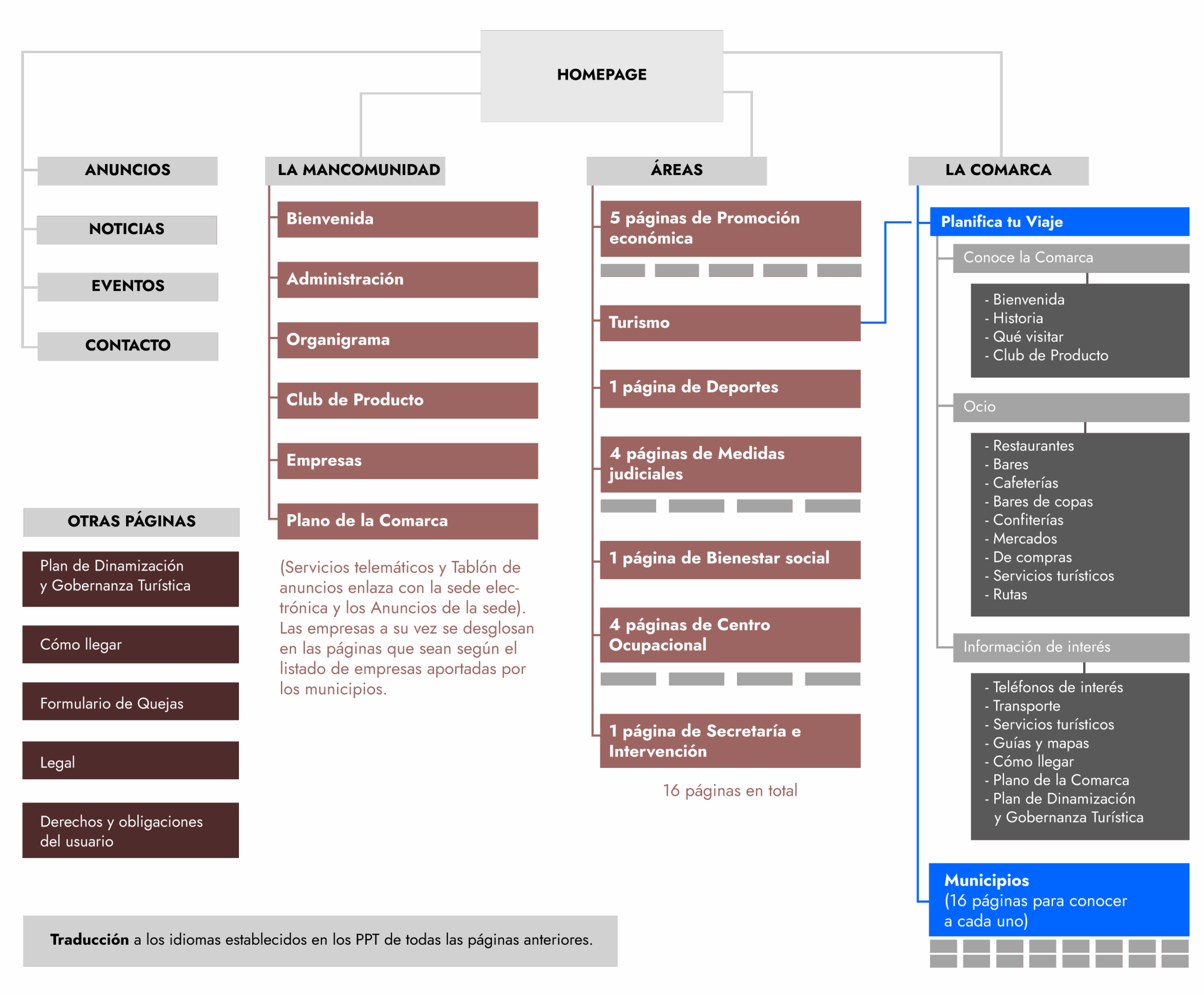 Se creará un portal que incluirá todos los servicios competencia del ente público, tanto del área turística como de cultura, bienestar social, seguridad ciudadana, medio ambiente, proyectos europeos, parques naturales, igualdad, polígonos industriales, tecnología, educación y juventud o deportes. Y la siguiente estructura: